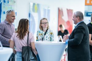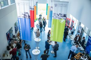- Messestände und Bistrotische im Foyer boten während der Pausen Gelegenheit für regen Austausch