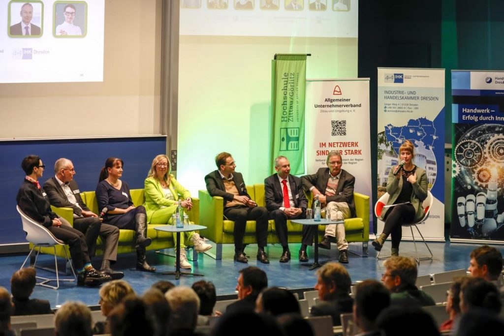 Ein zentrales Signal zu Beginn war die enge Zusammenarbeit zwischen Wirtschaft, Wissenschaft und Handwerk. Die Gäste wurden gemeinsam von Prof. Dr. Alexander Kratzsch (Rektor der Hochschule Zittau/Görlitz), Lukas Rohleder (Industrie- und Handelskammer Dresden), Daniel Hübschmann (Handwerkskammer Dresden) und Ina Ultsch (Allgemeiner Unternehmerverband Zittau und Umgebung) begrüßt. Sie stehen für den Schulterschluss der regionalen Akteure und den gemeinsamen Anspruch, Innovations- und Kooperationswege systematisch zu öffnen.